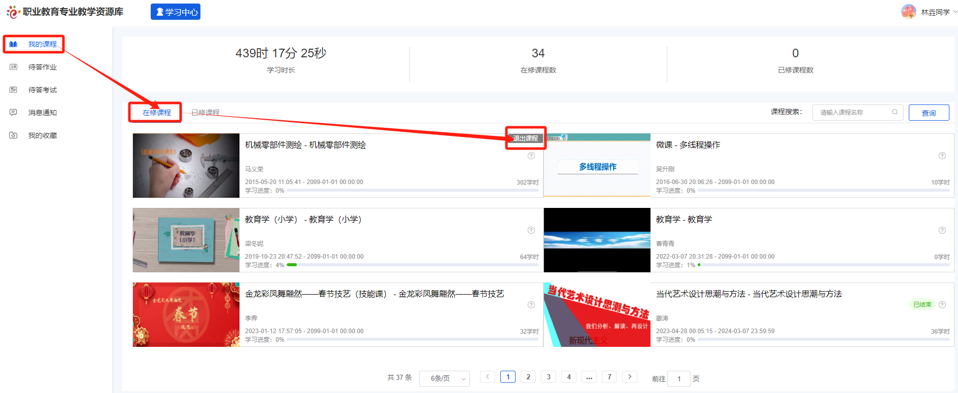我的课程(学习/退课) · 职业教育专业教学资源库平台帮助文档