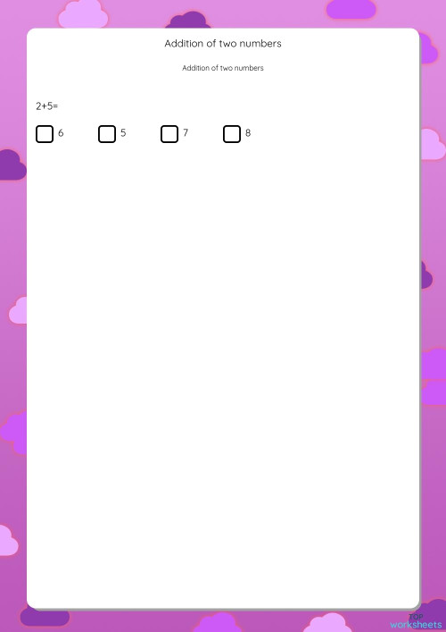 Addition of two numbers. Interactive worksheet | TopWorksheets