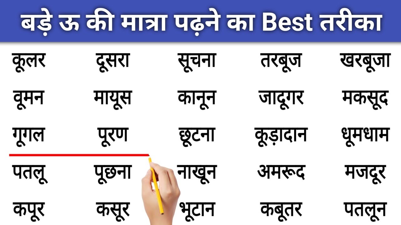 500 + बड़े ऊ की मात्रा वाले शब्द और वाक्य | Bade oo ki matra wale shabd ...