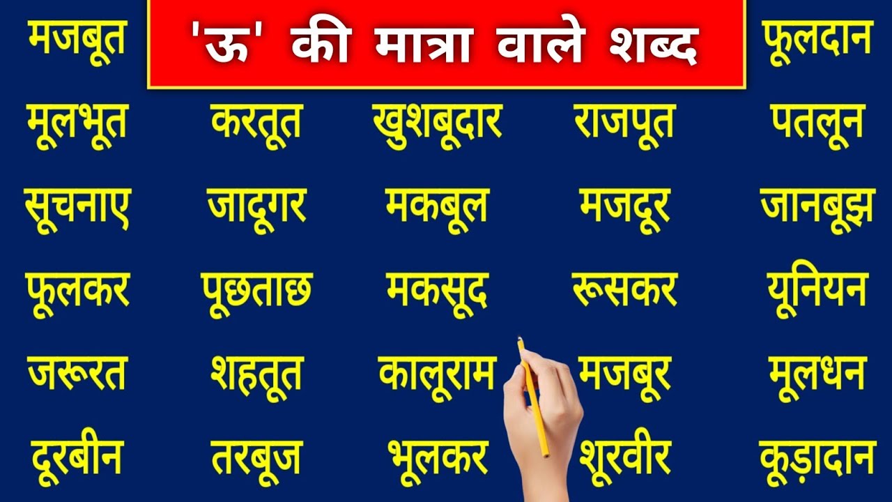 301+ ऊ की मात्रा वाले शब्द एवं वाक्य | Bade U Ki Matra Wale Shabd ...