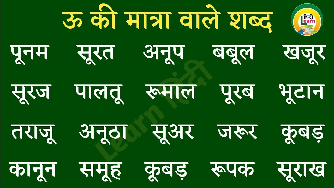 ऊ की मात्रा वाले शब्द – uu ki matra wale shabd in 2022 | Hindi language ...