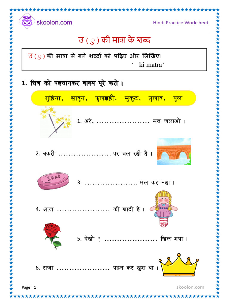 छोटे "उ" की मात्रा वाले 35 + शब्द और वाक्य – वर्कशीट | Chhote U Ki ...