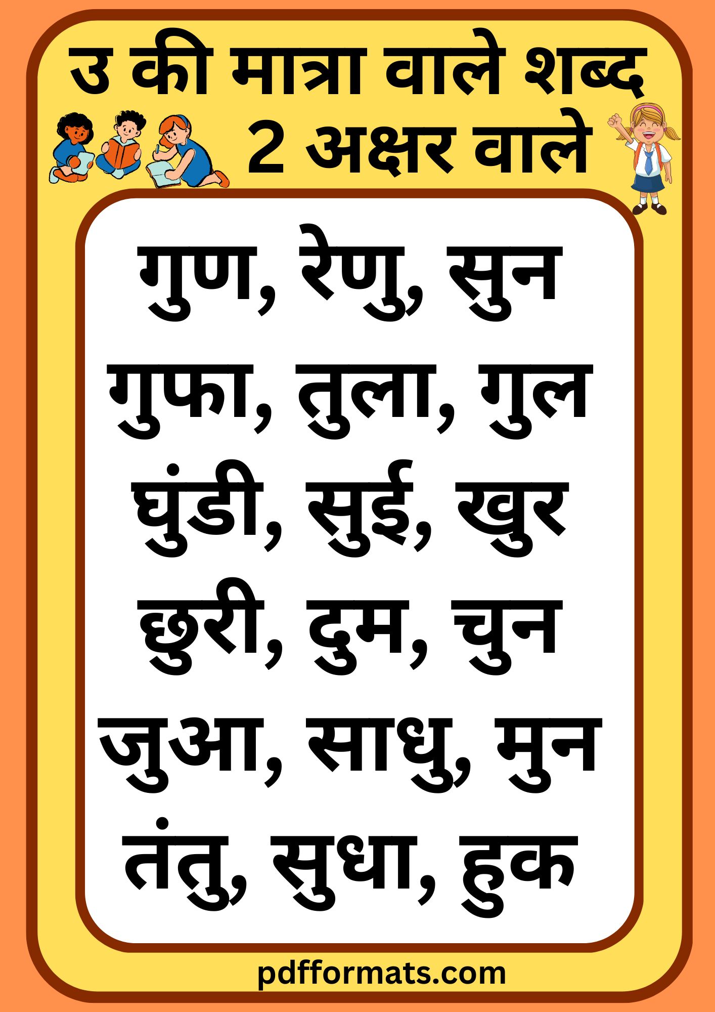 500+ 'उ' Chhote u Ki Matra Wale Shabd Hindi Mai - Hindi Work