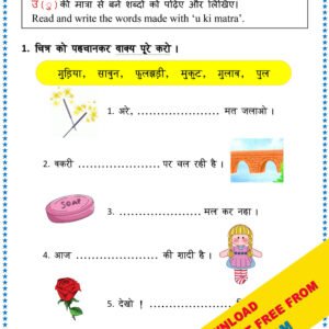 उ की मात्रा वाले शब्द वर्कशीट | Bade U Ki Matra Ke Shabd Worksheet ...