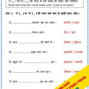 ऊ की मात्रा वाले शब्द | Oo ki Matra Ke Shabd in Hindi Worksheets