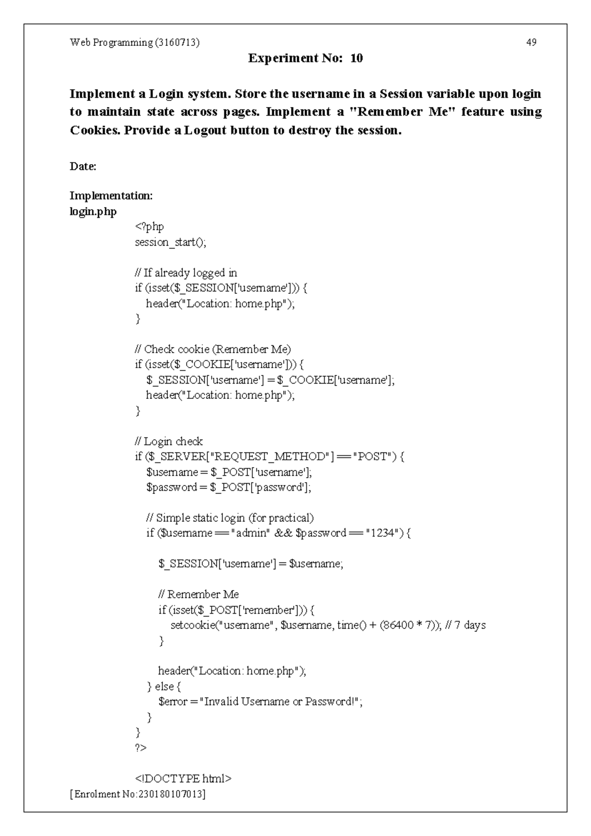 Web Programming (3160713) Practical 10: Login System Implementation ...