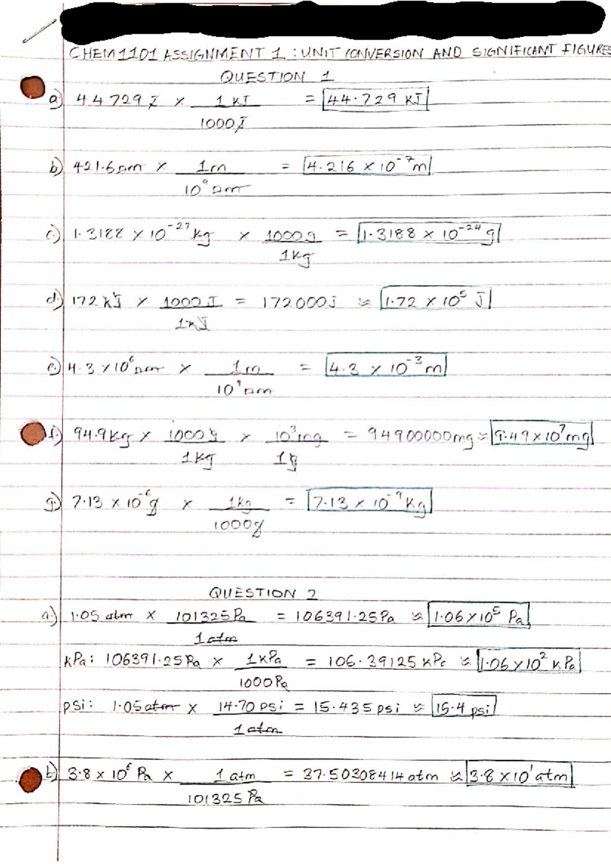 CHEM1101 Assignment 4 Solutions: Conversion and Sign Figures - Studocu