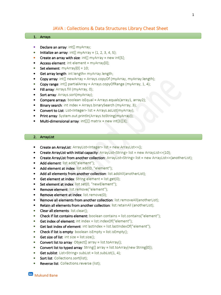 Based on this image's title: “? Java Collections & Data Structures - Cheat Sheet | PDF | String ...”