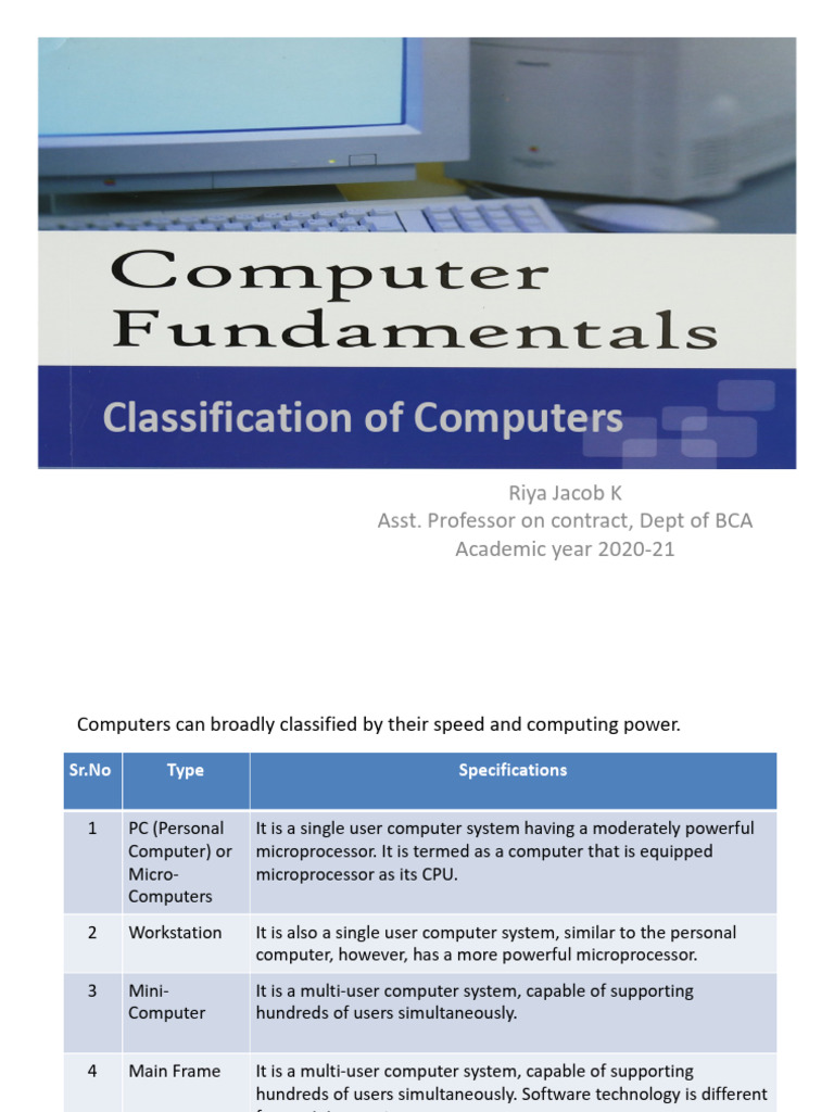 Classification of Computers: Riya Jacob K Asst. Professor On Contract ...