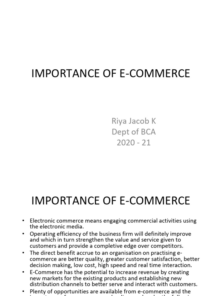 Importance of E-Commerce: Riya Jacob K Dept of BCA 2020 - 21 | PDF | E ...