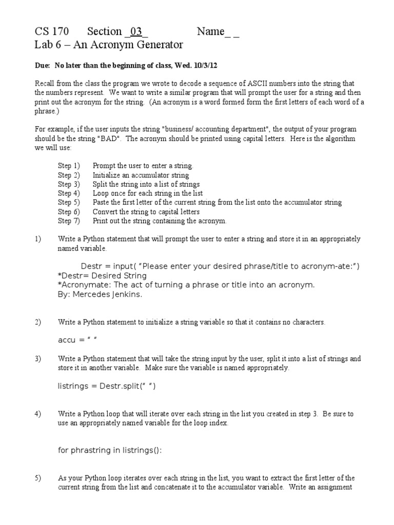 Create Your Own Acronyms with This Simple Python Program | Course Hero
