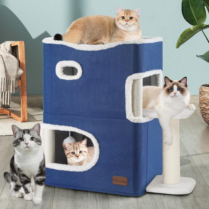 FURRYPAWS Cat House Indoor 2 Layer Cats Cave with Scratching Board ...