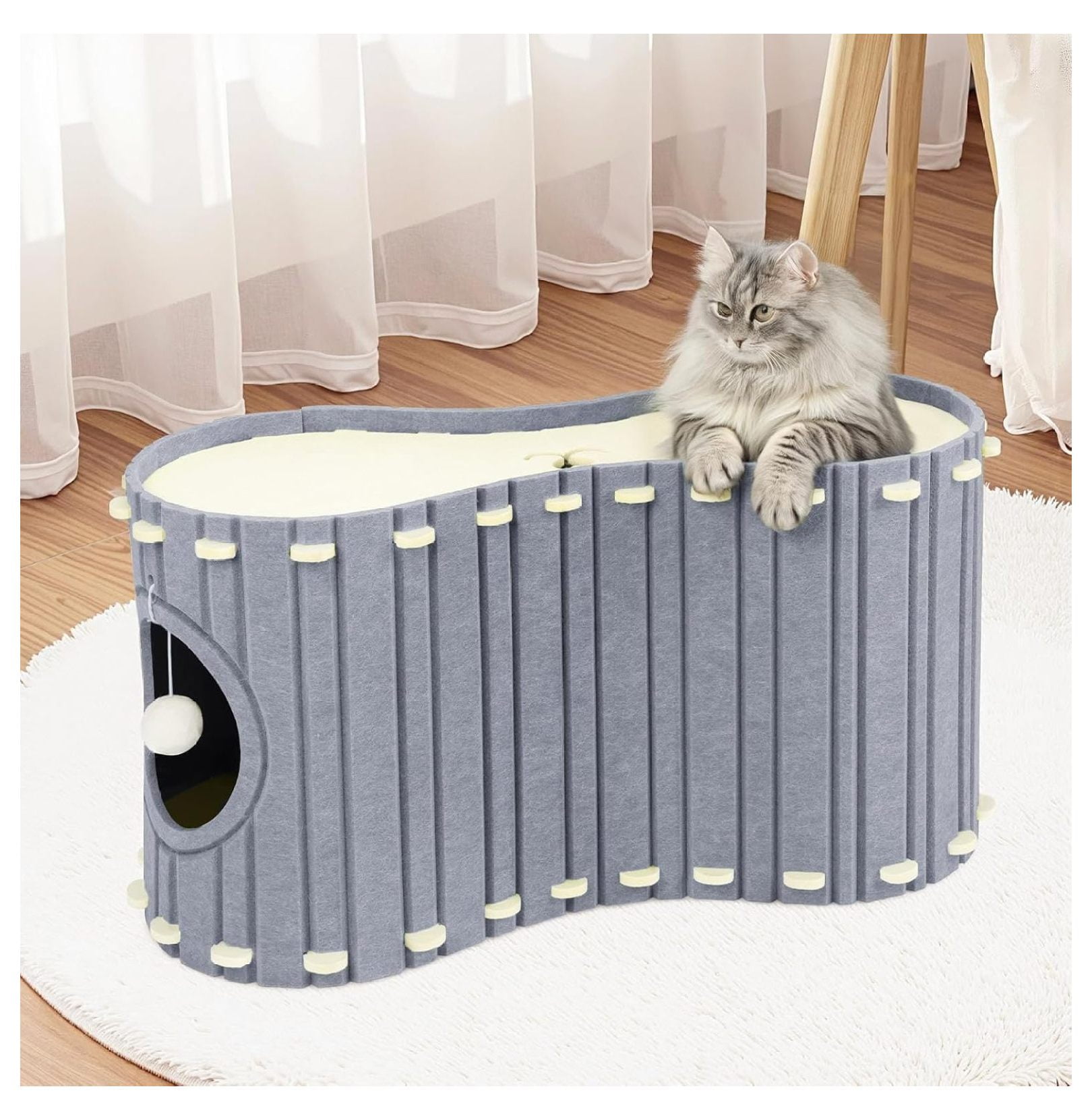 Niubya Indoor Cat Large Cat Bed Cave with Fluffy Ball and Scratch Pad ...