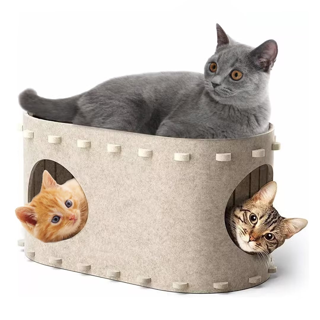 Inadays Cat House for Indoor Cats, 2-Storey Cozy Felt Cat Bed Cave with ...