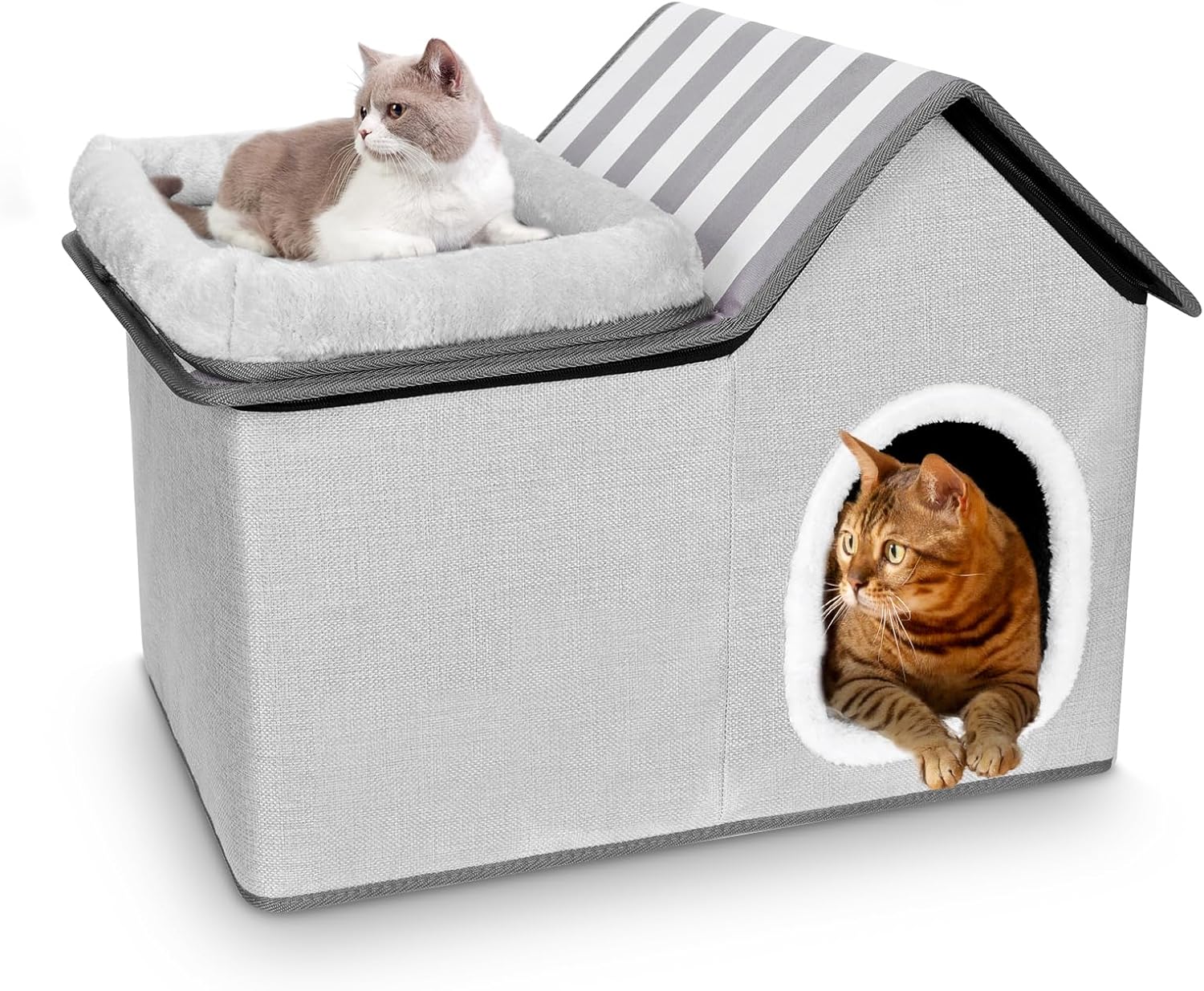 Furry friend Cat Beds for Indoor Cats, 2 in 1 Large Cat House, Foldable ...