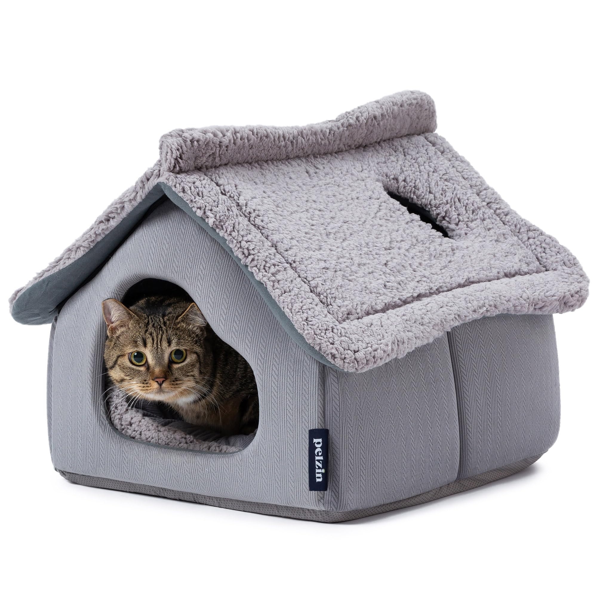 Pelzin Cat Houses for Indoor Cats - Large Cat Cave Bed with Removable ...