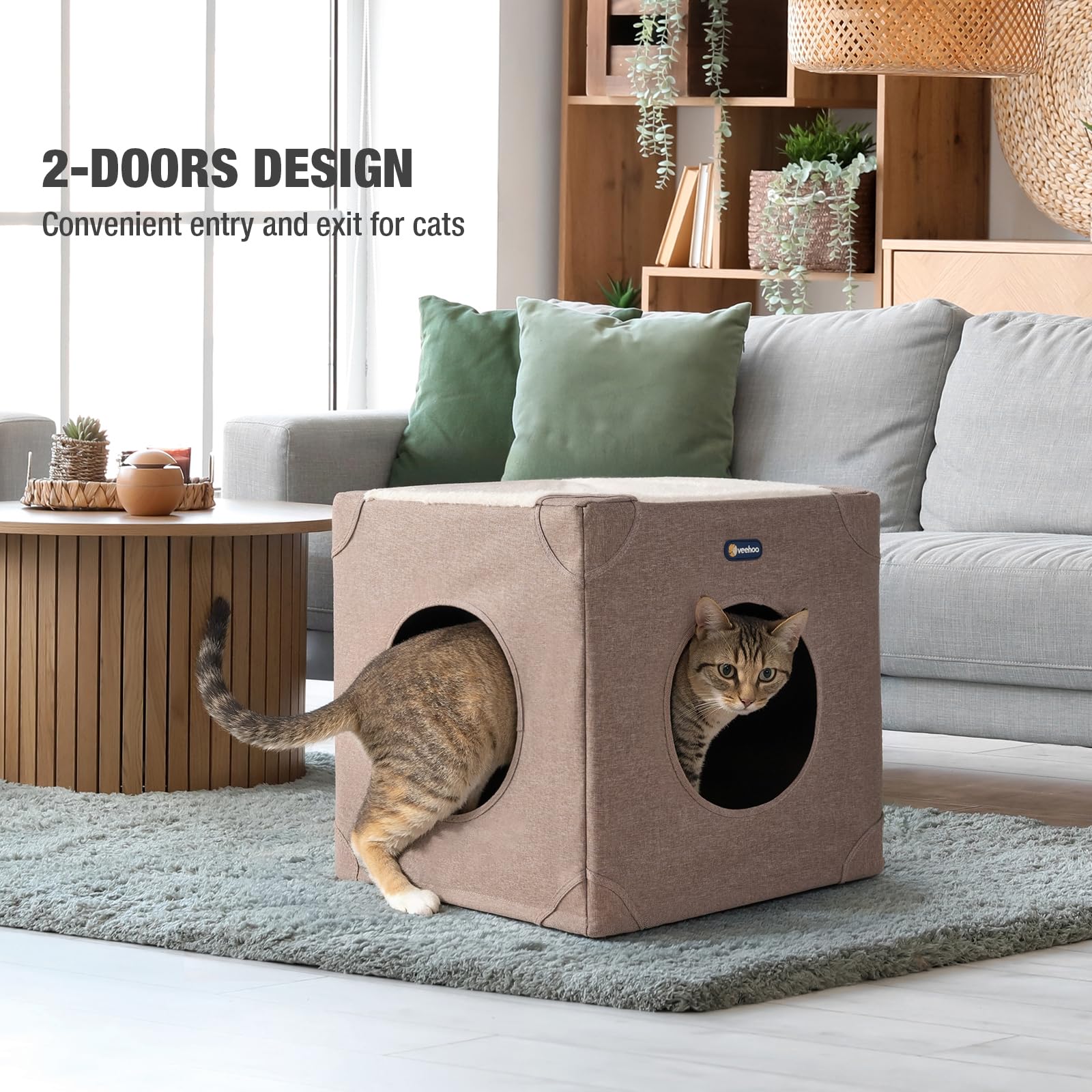 CATISM Cat Cave for Indoor Cats Multifunctional Cube Cat House with Cat ...