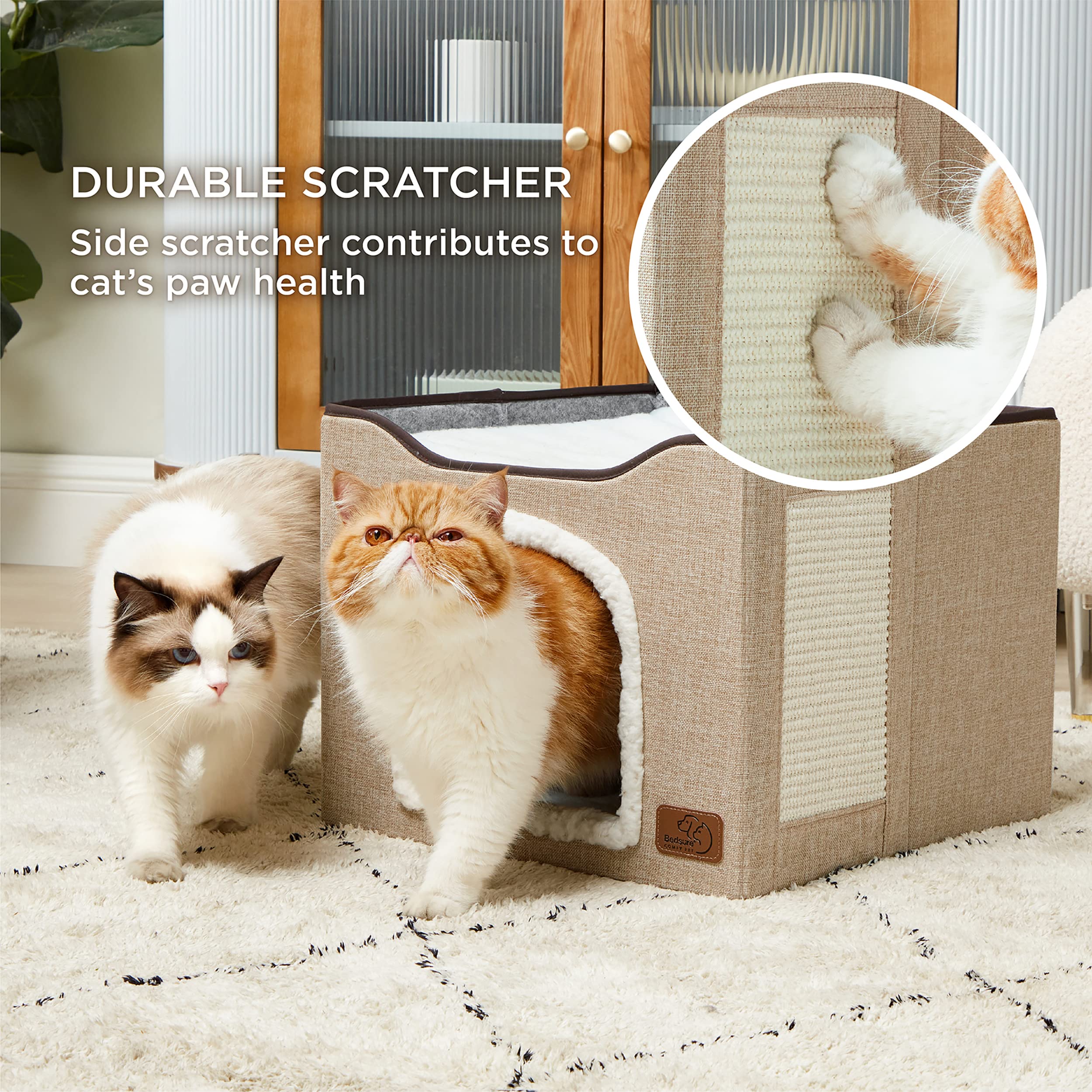 Cat Bed for Indoor Cats, Cat House for Large & Multiple Cats, Scratch ...