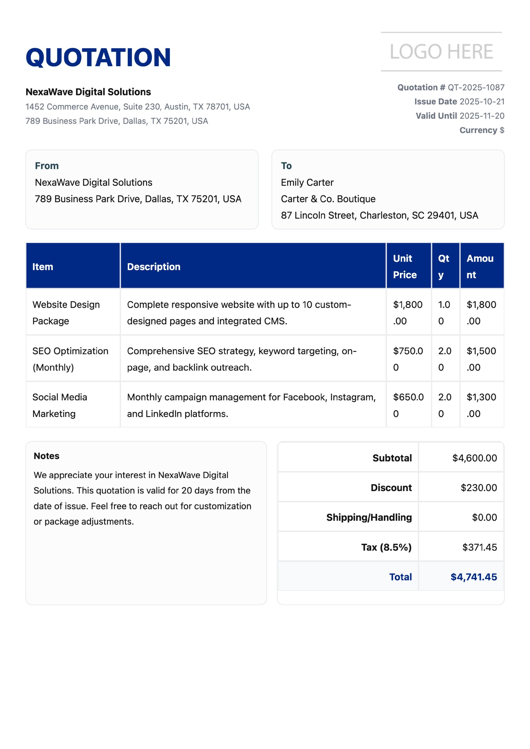 Online Quotation Maker | Free Quotation & Estimate Generator