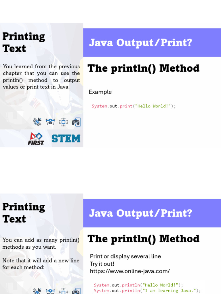 STEM Club Introduction To Java - PrintOut - Output | PDF | Quotation ...