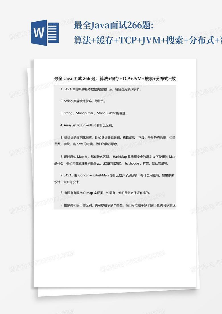 最全java面试266题:算法+缓存+tcp+jvm+搜索+分布式+数据库Word模板下载_编号lyxwpdgz_熊猫办公