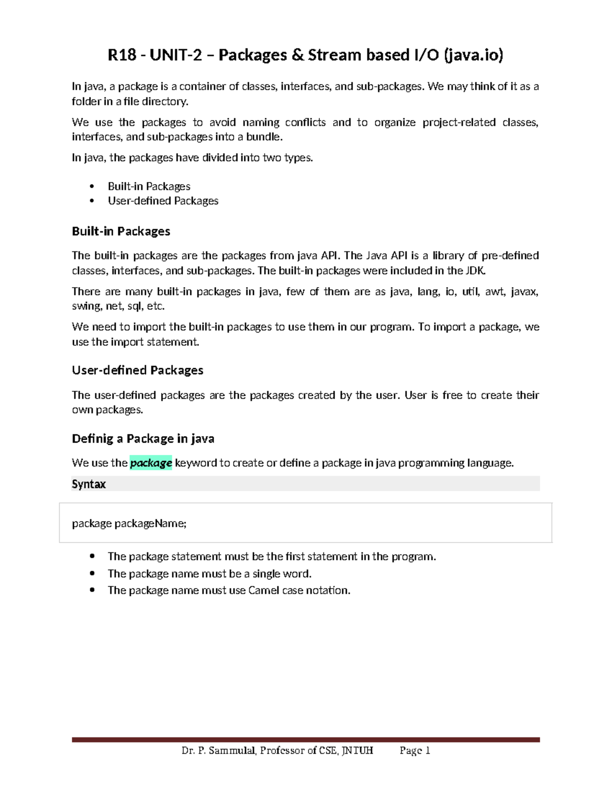 R18 CSE Unit 2: Java Packages and Stream Handling Notes - Studocu