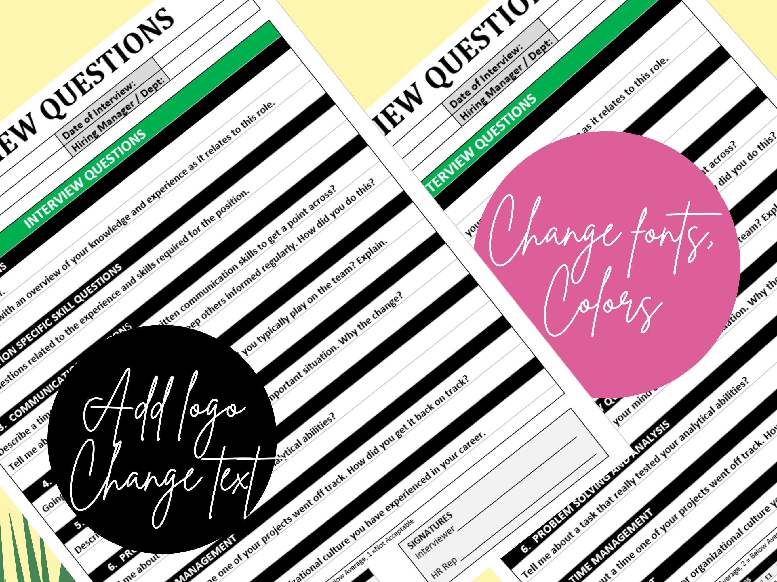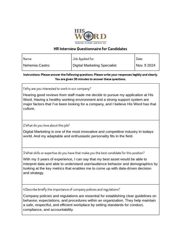 HR Behavioral Interview Questions - Editable Word Template for ...