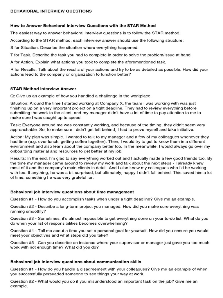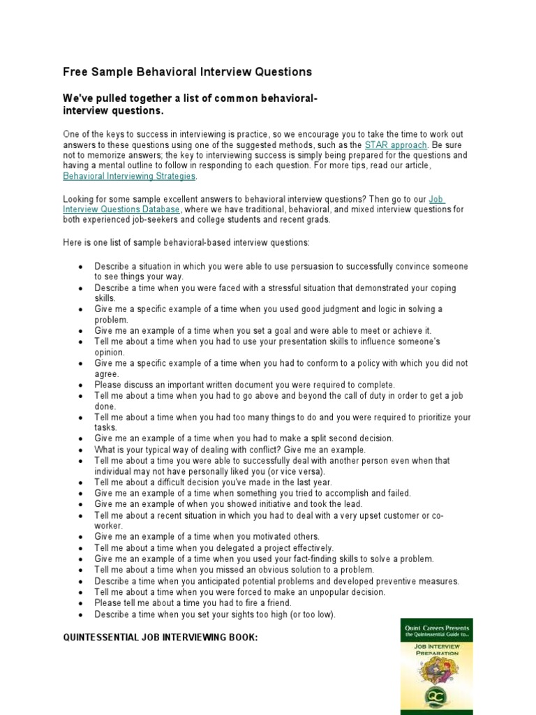 Free Sample Behavioral Interview Questions | PDF | Job Interview ...