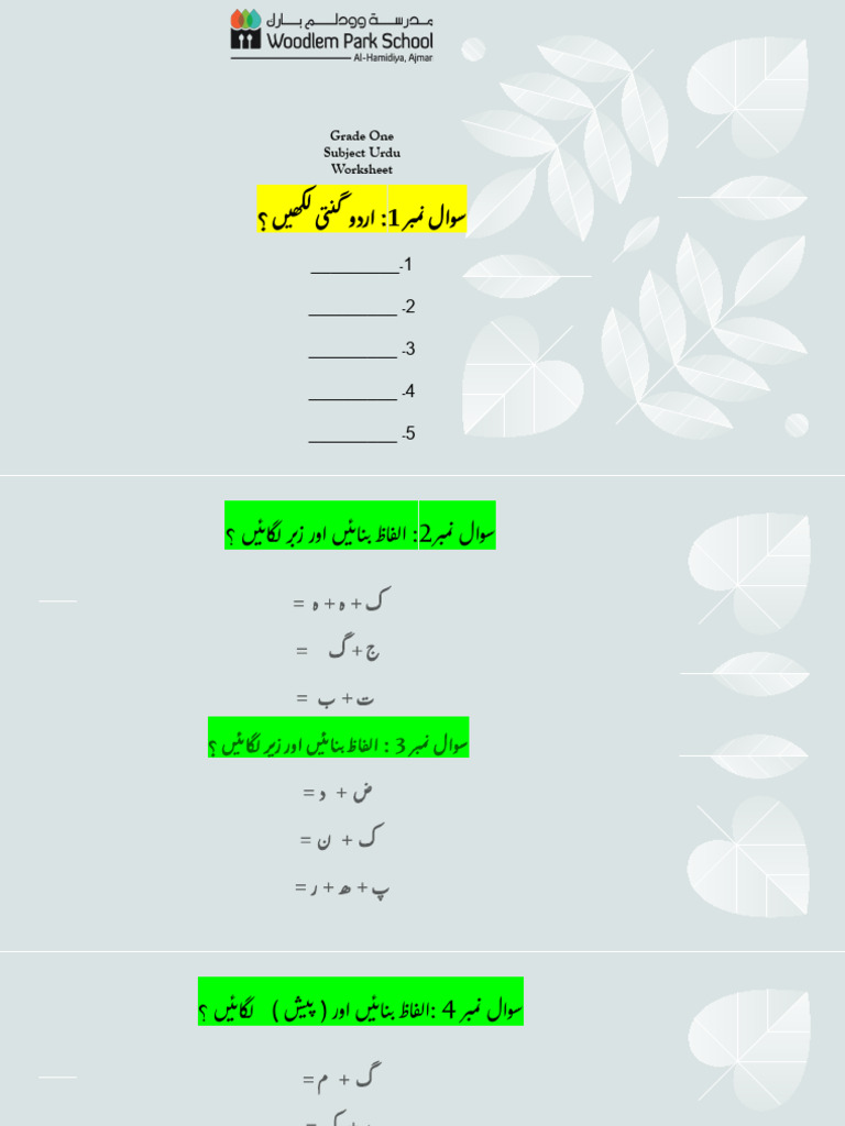 Grade One Urdu Worksheet For Exam | PDF