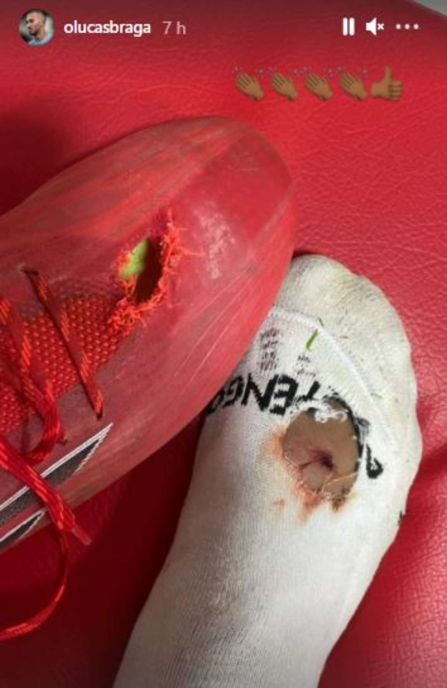 Com aplausos irônicos, Lucas Braga publica foto de chuteira rasgada e ...