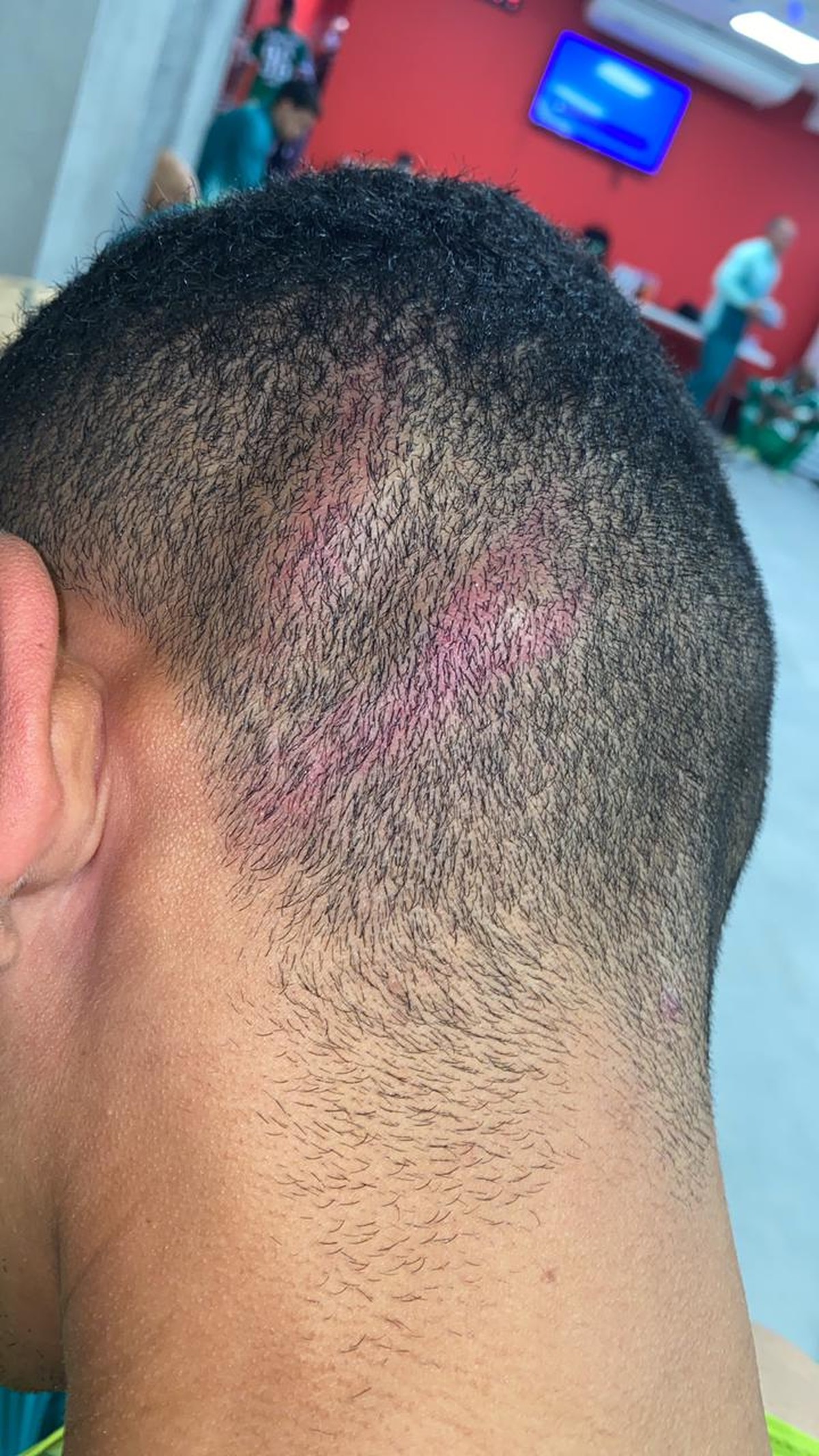 Léo Gomes exibe marcas na cabeça geradas em lance da expulsão de Nestor ...