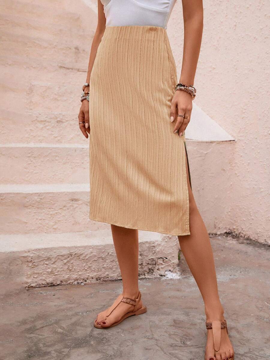 SHEIN Clasi Solid Split Thigh Skirt | SHEIN UK