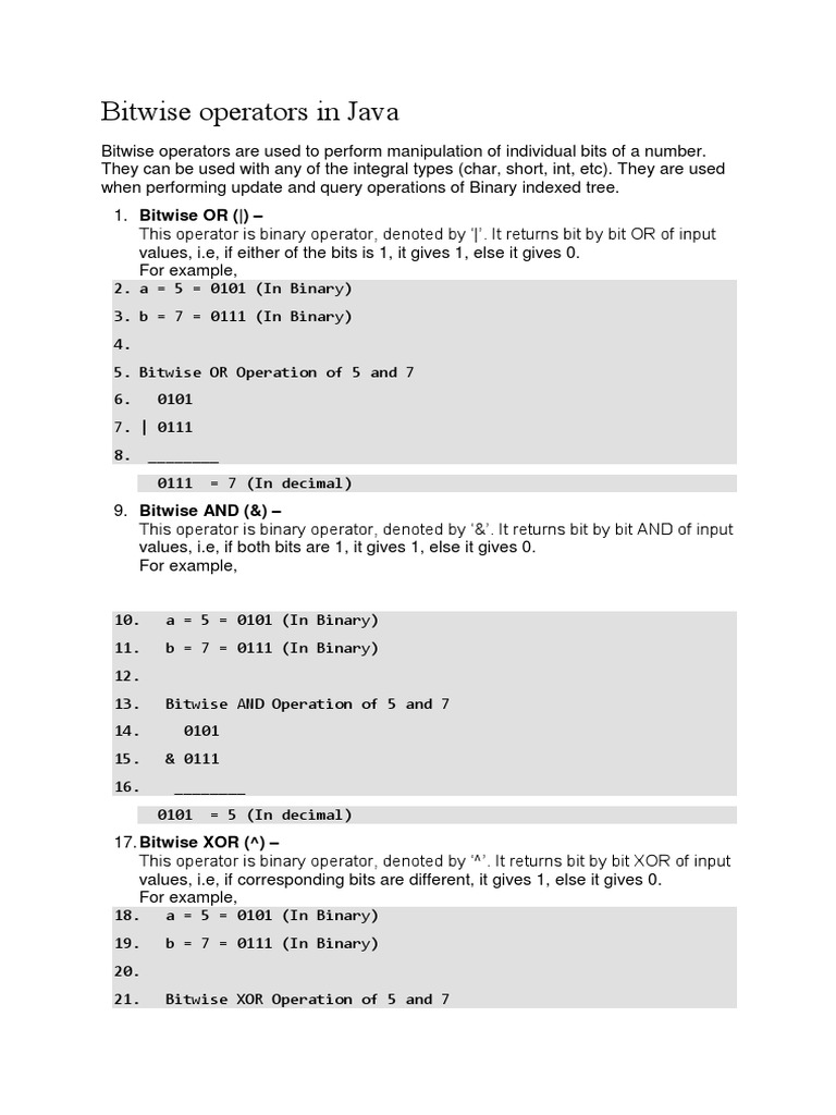 Java Bitwise and Bit Shift operators with Examples - RefreshJava