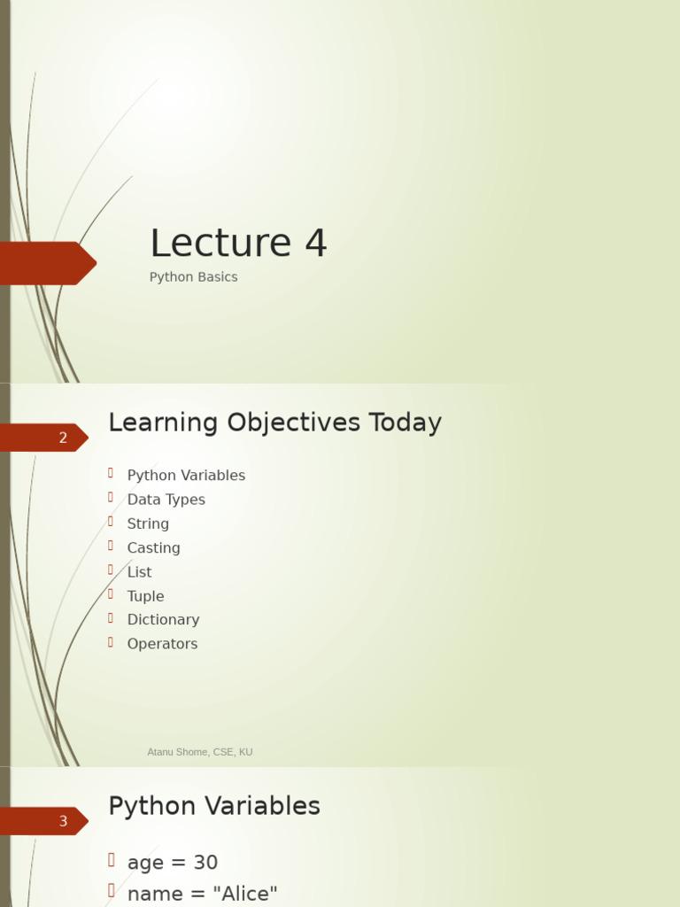 Lec02 Python Basics | PDF | Boolean Data Type | Integer (Computer Science)