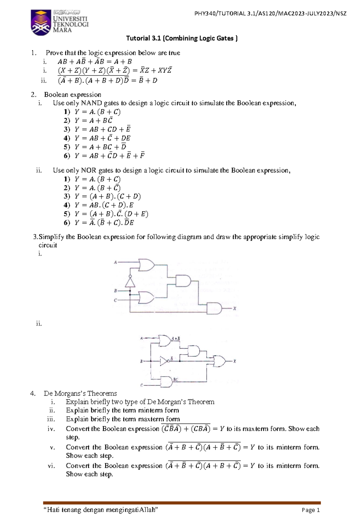 PHY340 - Tutorial 3.1: Logic Gates & Boolean Expressions - Studocu