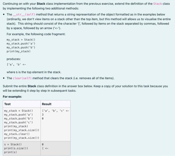 Solved Python 3 An implementation of the Stack ADT is shown | Chegg.com