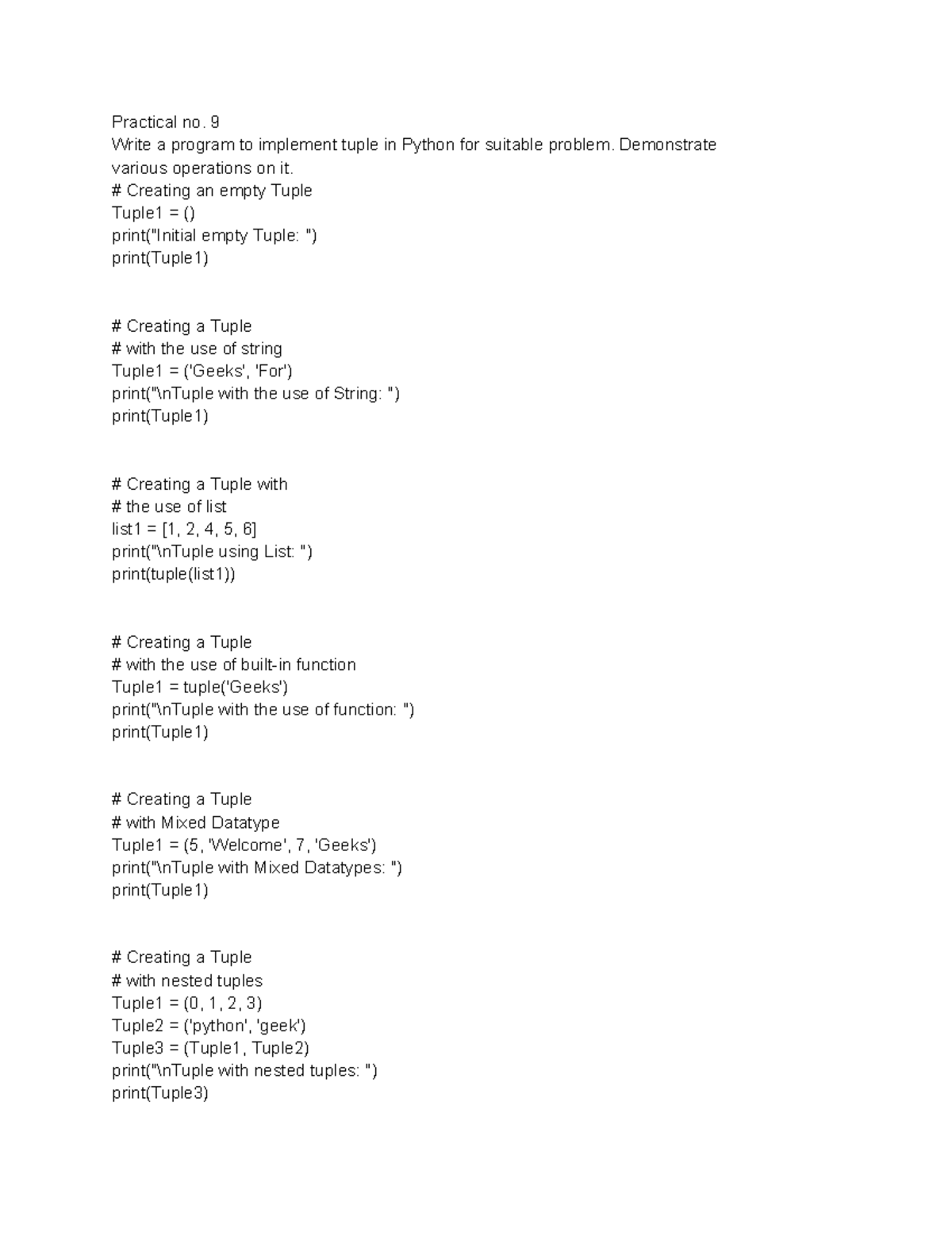 Tuple in python - Upload for download - Practical no. 9 Write a program ...