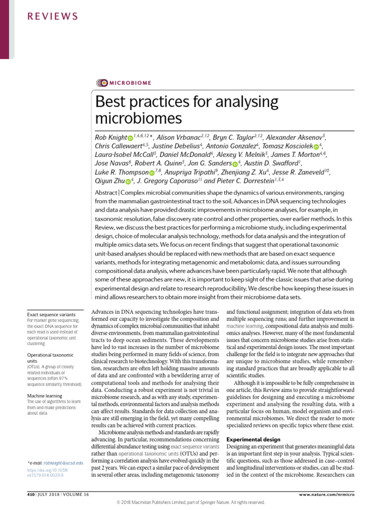 Nature Reviews Microbiology-微生物组分析最佳实践 | PDF | Dna Sequencing ...