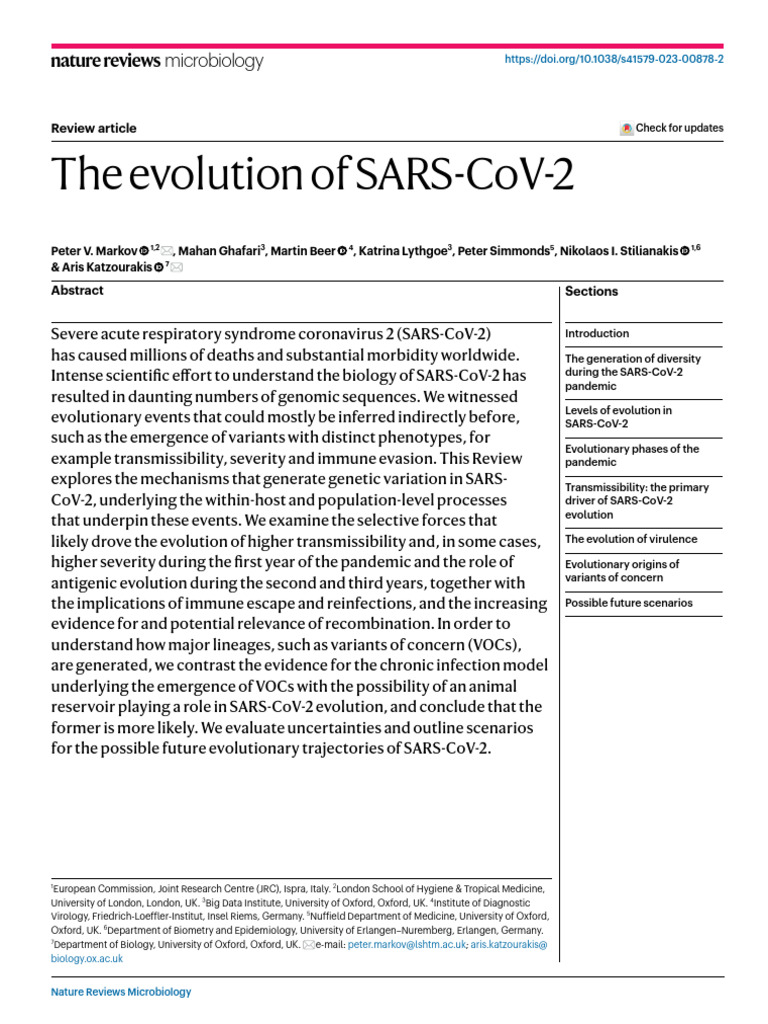 Markov Et Al-2023-Nature Reviews Microbiology | PDF | Virus | Mutation