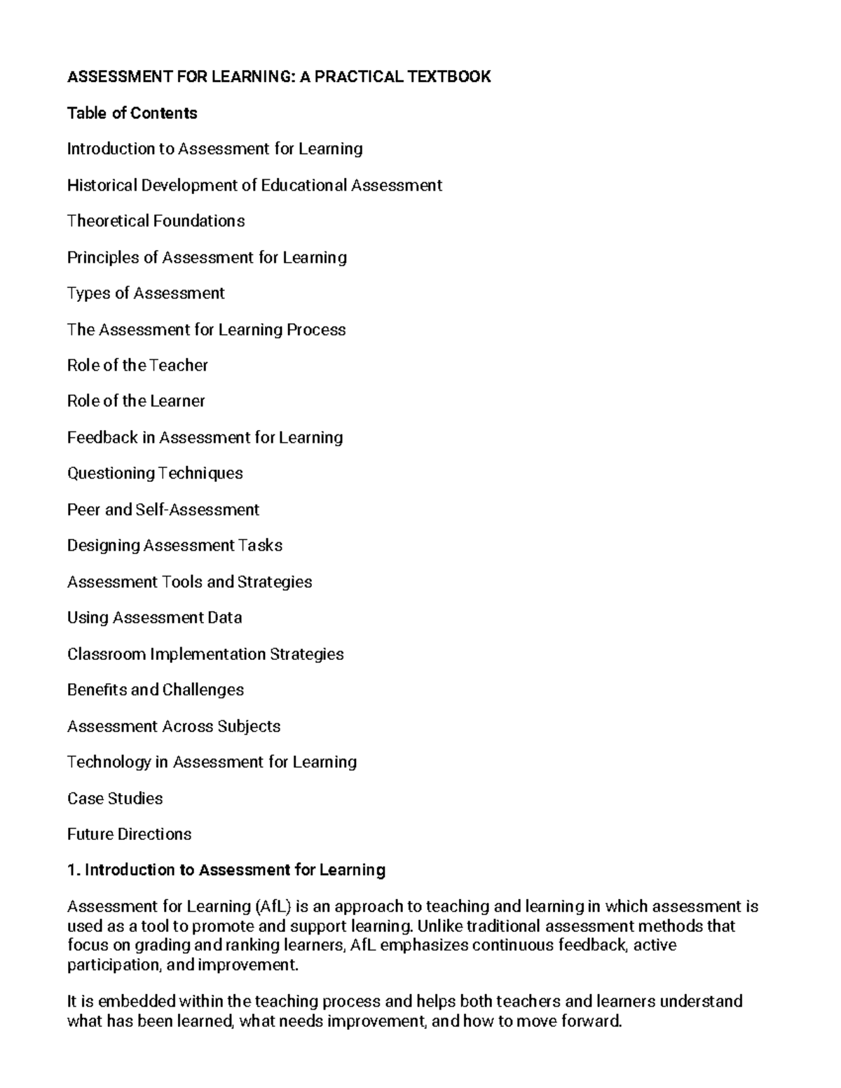 Assessment for Learning: A Practical Textbook Overview - Studocu