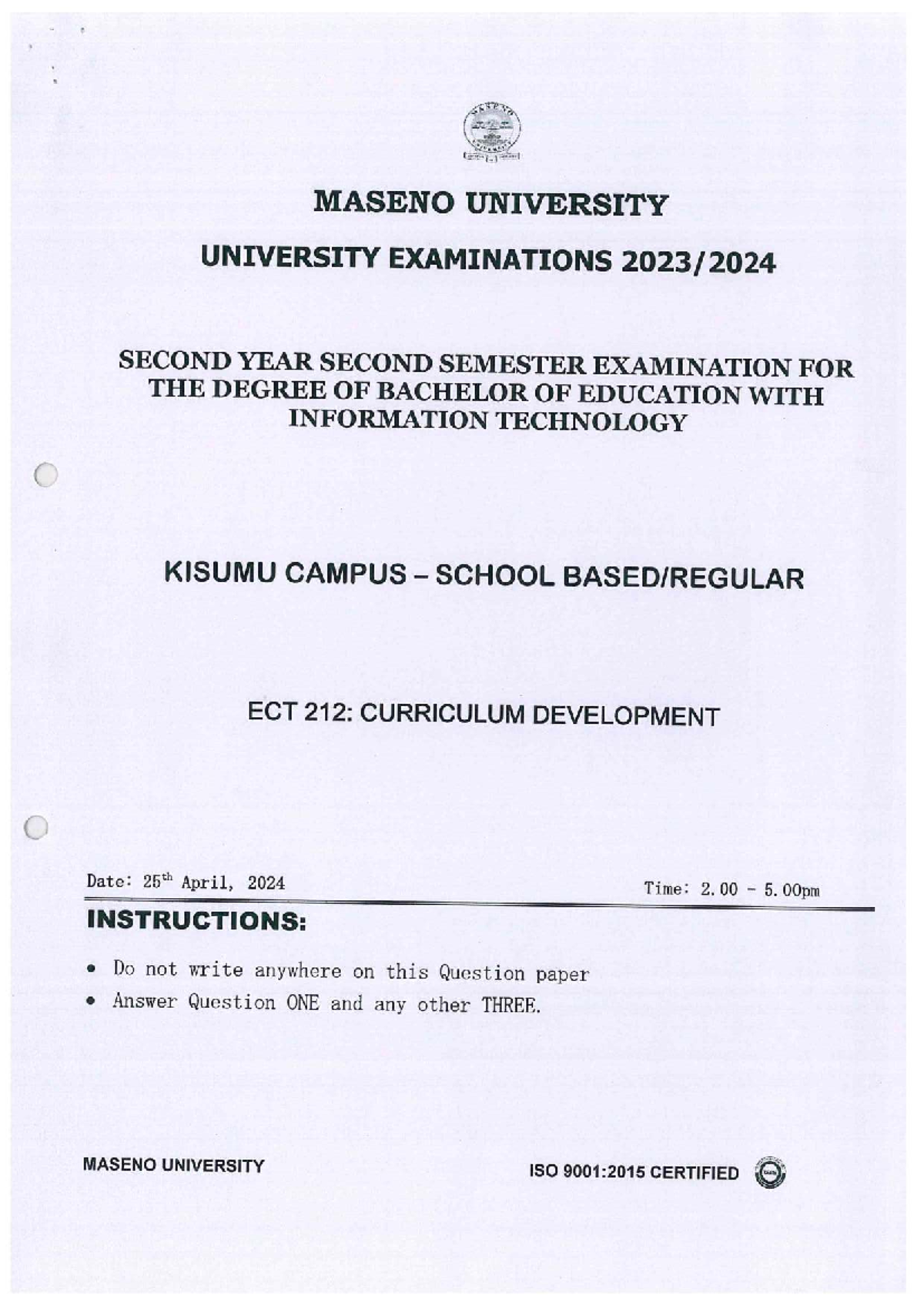 ECT 212: Curriculum Development Exam Notes - Maseno University - Studocu