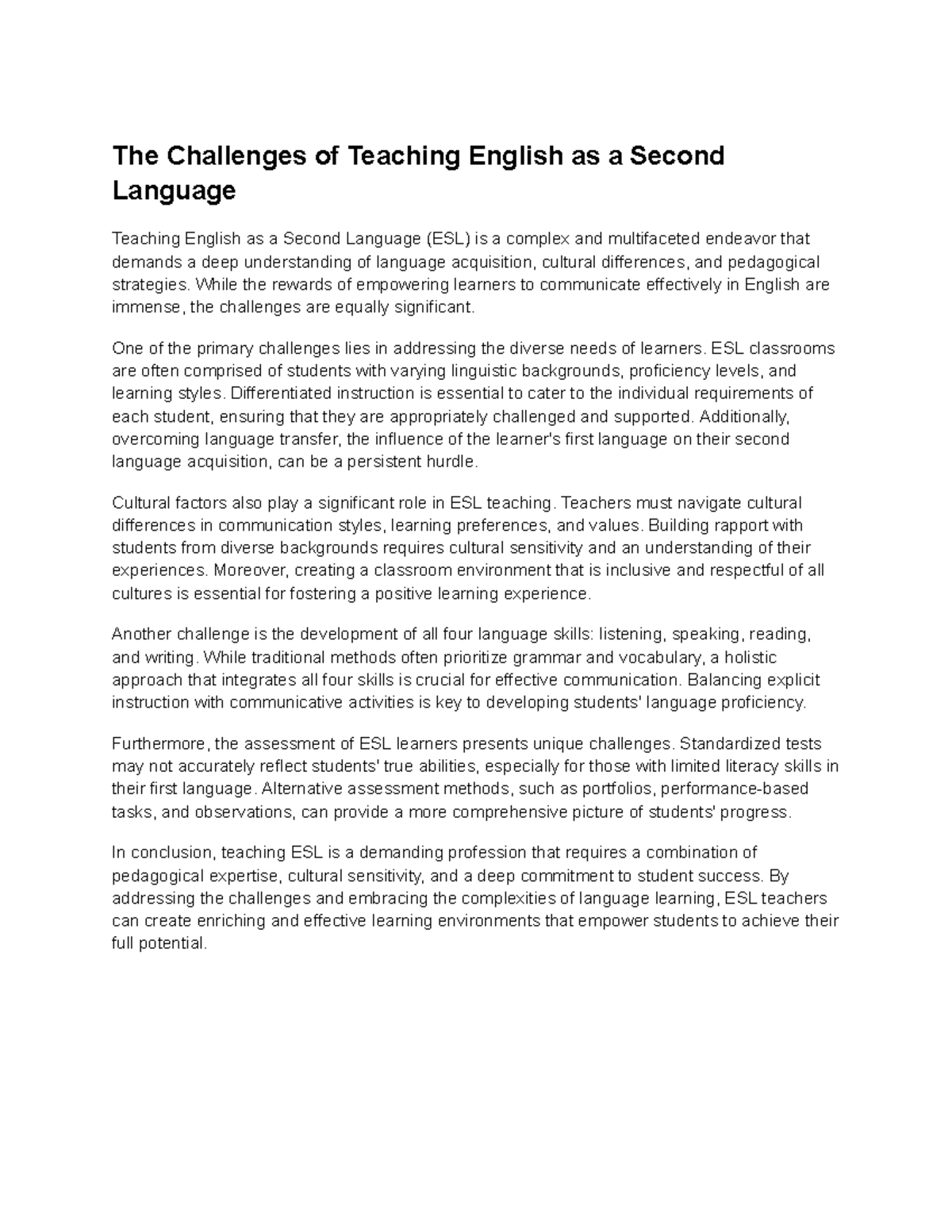 ESL 101: Overcoming Challenges in Teaching English as a Second Language ...