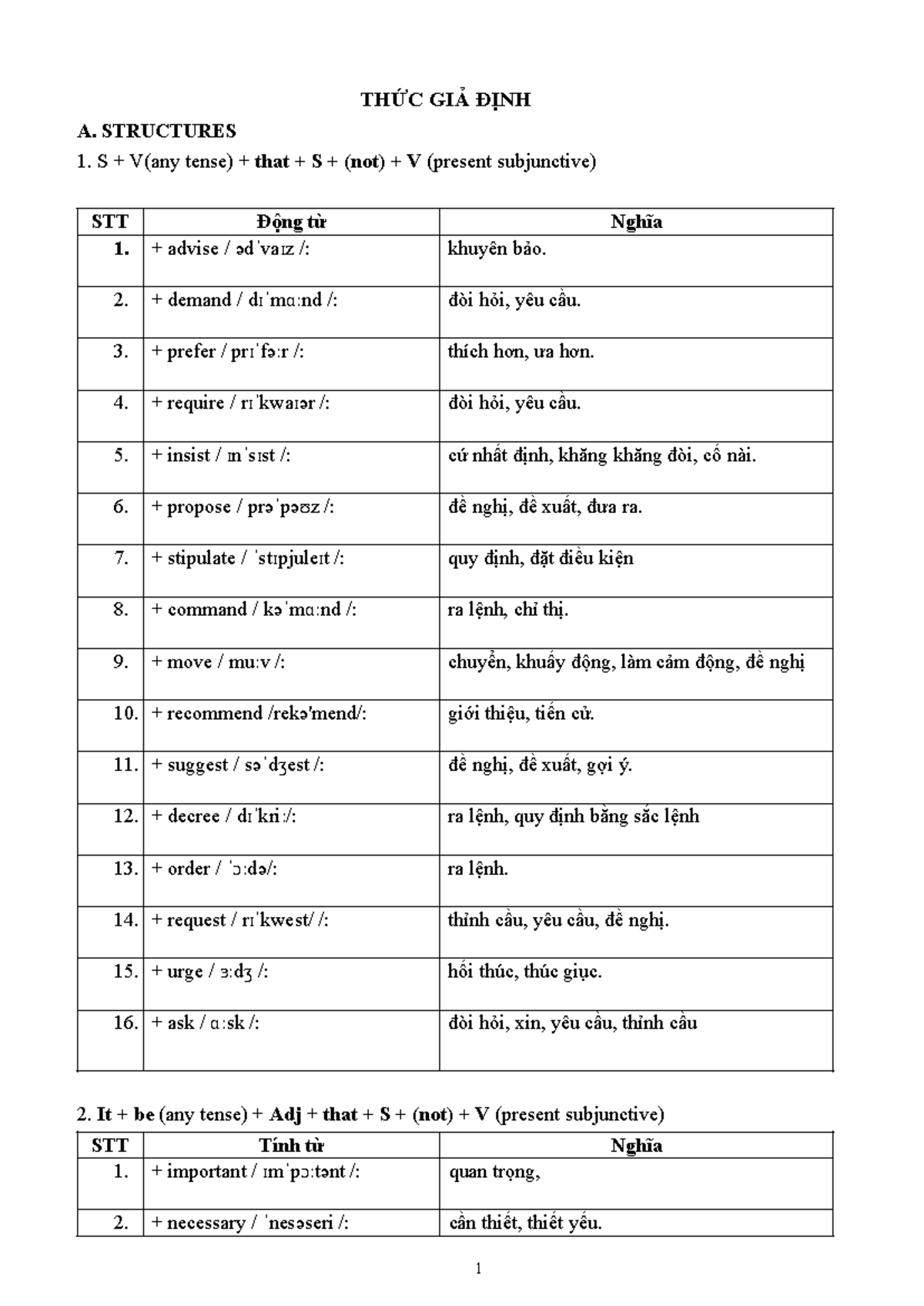 TL29 - THỨC GIẢ ĐỊNH: Cấu Trúc và Bài Tập 30CĐ - Studocu