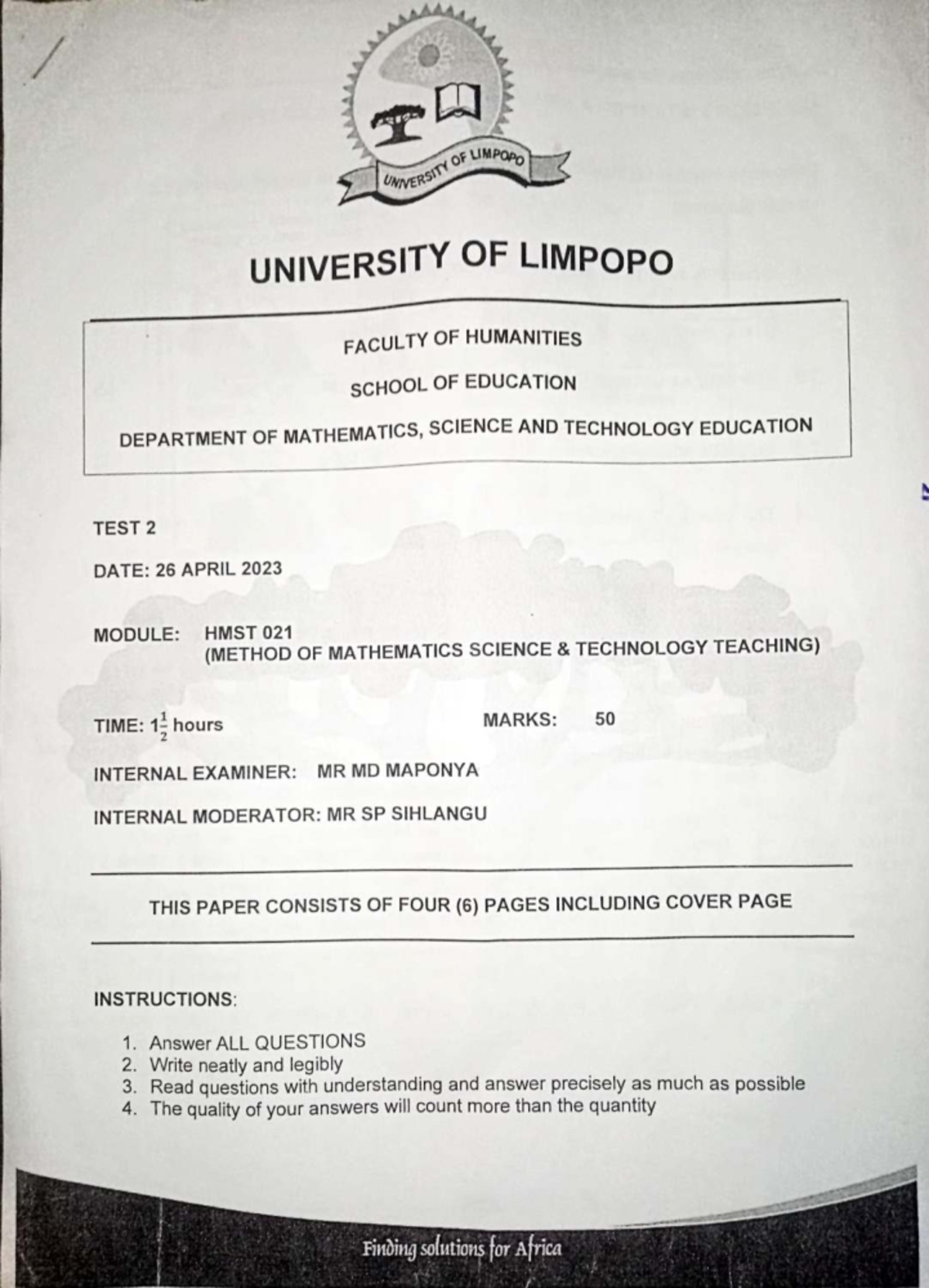 HMST 021 Test 2 - Methods of Mathematics Science & Technology Teaching ...