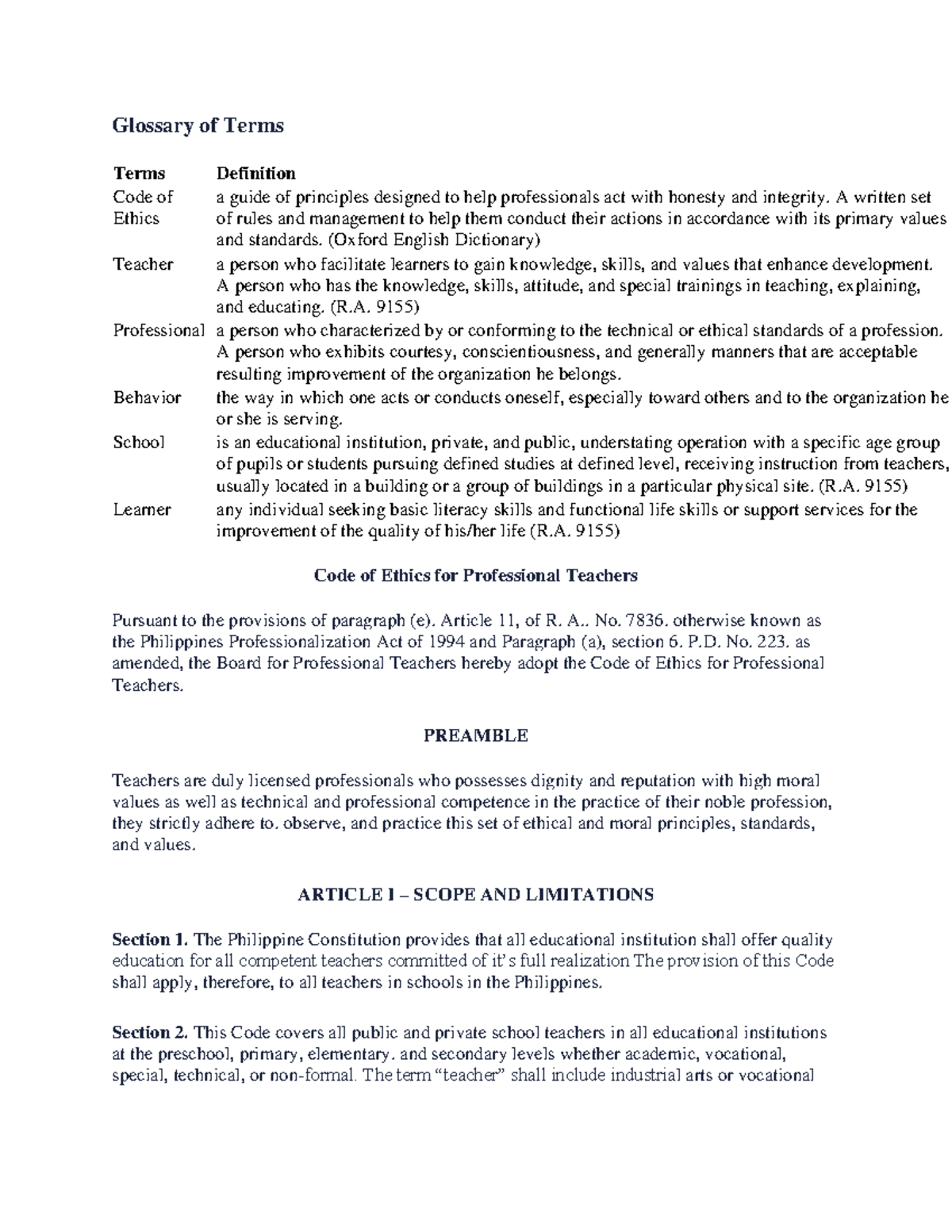 Code of Ethics for Professional Teachers (R.A. 7836) Explained - Studocu