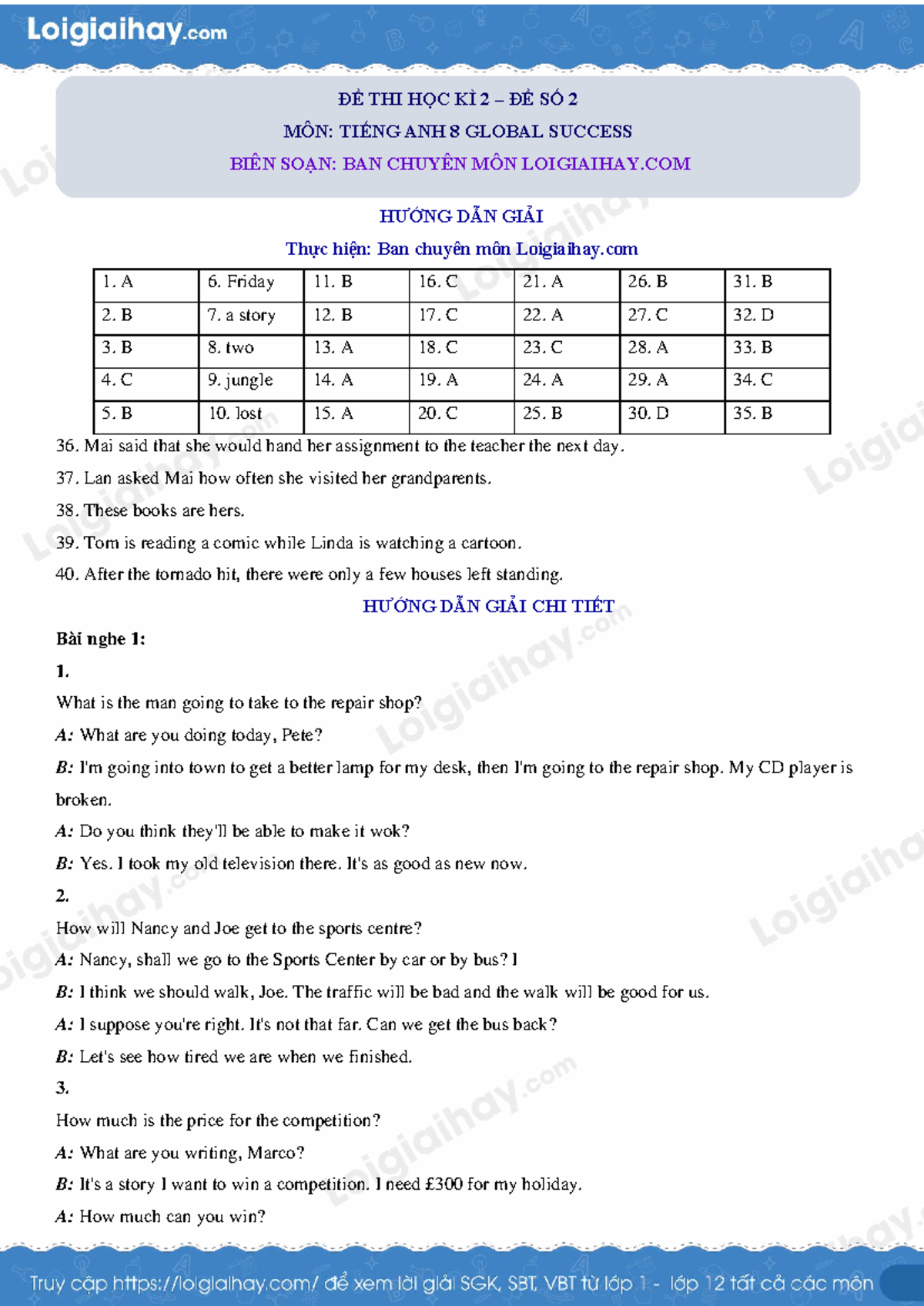 ĐỀ THI HỌC KÌ 2 ĐỀ SỐ 2 MÔN TIẾNG ANH 8 - HƯỚNG DẪN GIẢI CHI TIẾT - Studocu