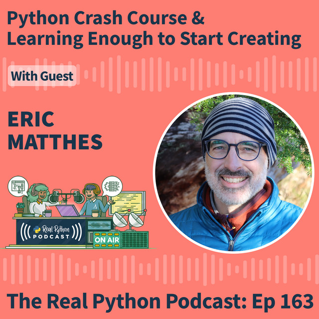 Based on this image's title: “Episode #163: Python Crash Course & Learning Enough to Start Creating ...”
