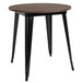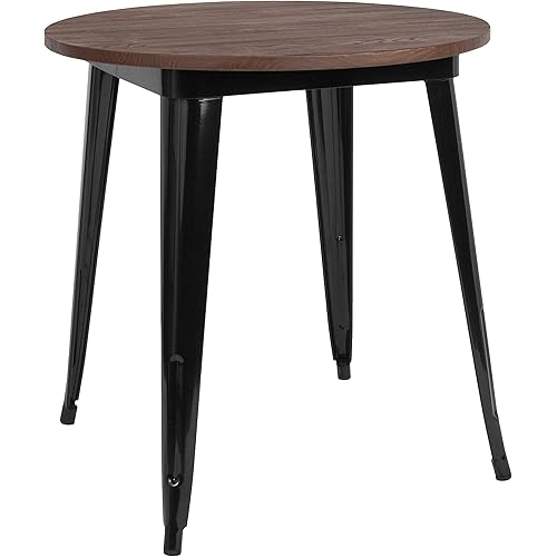 30" Round Black Metal Indoor Table with Walnut Rustic Wood Top [FLF-CH ...