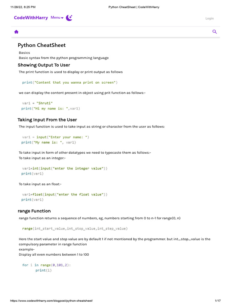 Python CheatSheet - CodeWithHarry | PDF | Class (Computer Programming ...