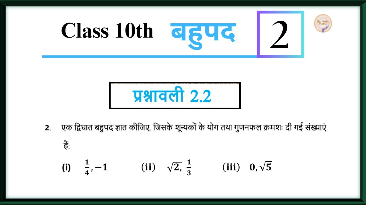 Ncert class 10th math chapter 2 exercise 2.2 / cbse class 10 mp board ...